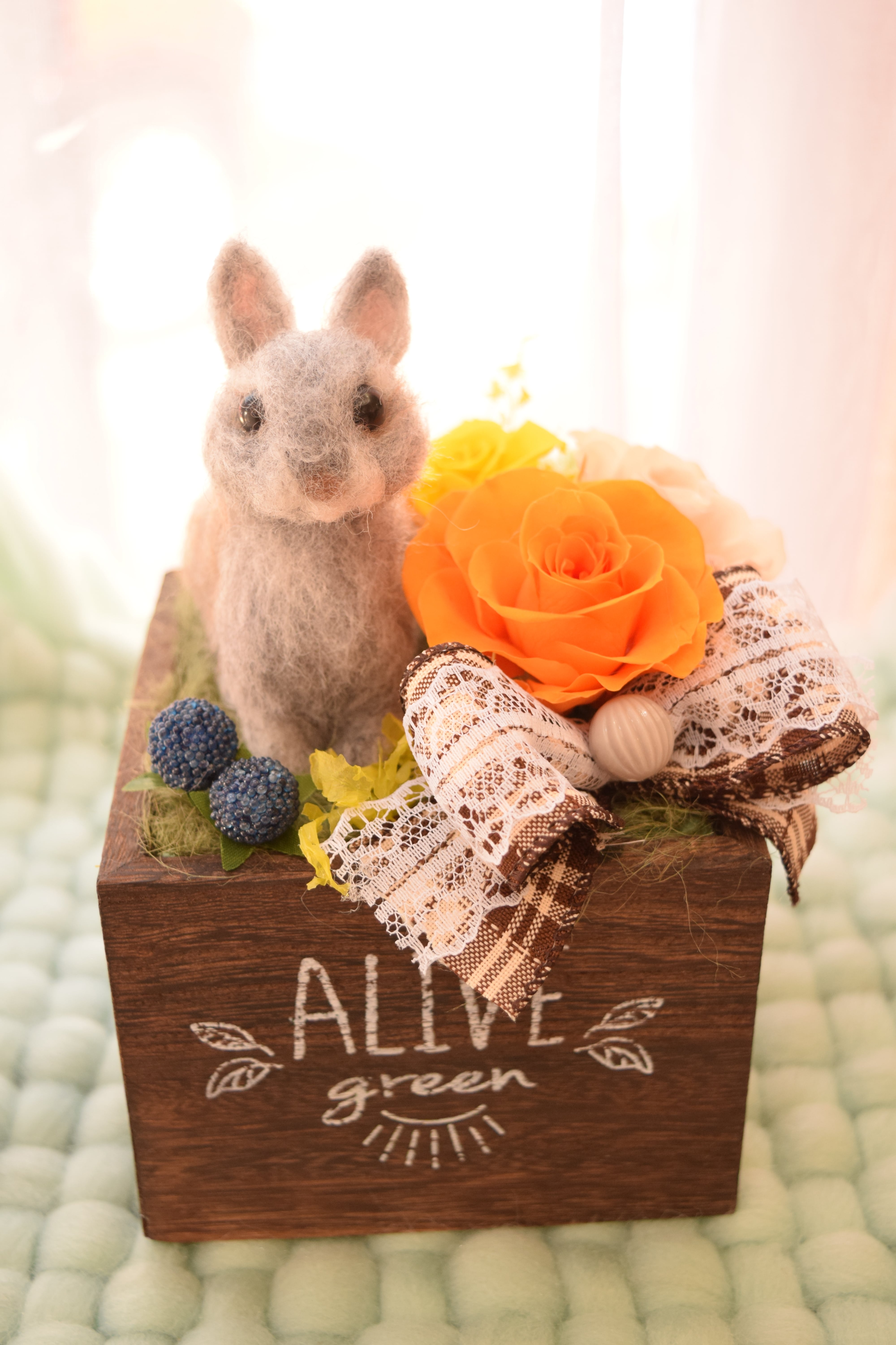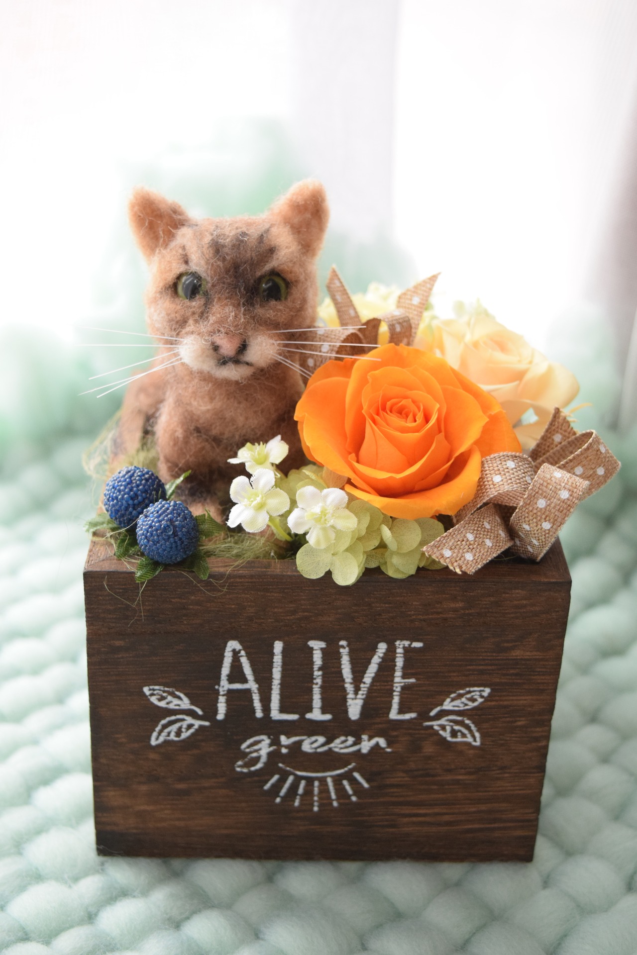 ドールとお花2輪【オーダーメイドで愛犬・愛猫の羊毛フェルト・お供え花やペットフラワーに】